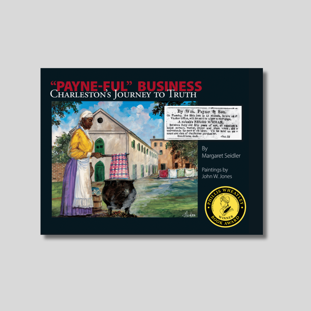 “Payne-ful” Business: Charleston's Journey to Truth follows Margaret Seidler's mission to learn and process her family's genealogical past. Using extensive research and personal experience, Seidler discusses the realities of Charleston's racial history while highlighting the historians, journalists, and community members who work to reconcile those truths. The book features authentic, historic slave advertisements brought to life by vivid paintings by artist John W. Jones that uncover the humanity hidden beneath the detached advertisement descriptions. Seidler hopes that acknowledging a more complete truth about our past will motivate us to bridge today’s racial divide.